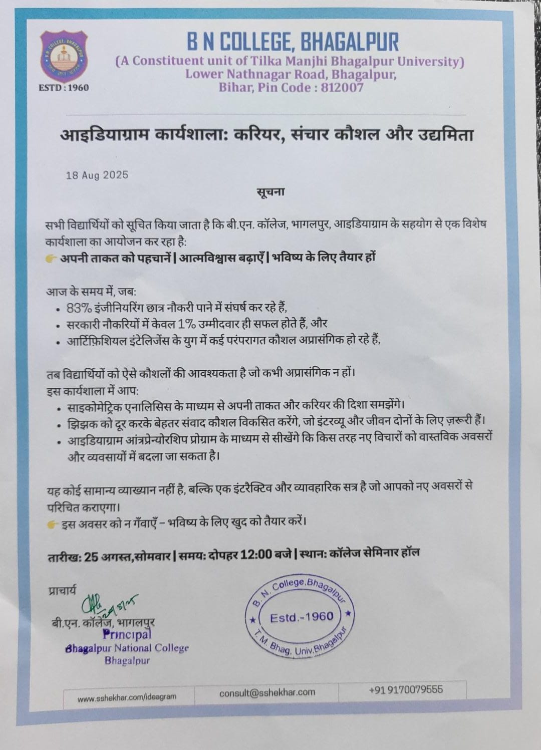 B N College, Bhagalpur > News & Events > College Events > IdeaGram Workshop on Career, Communication & Entrepreneurship – 25.08.2025