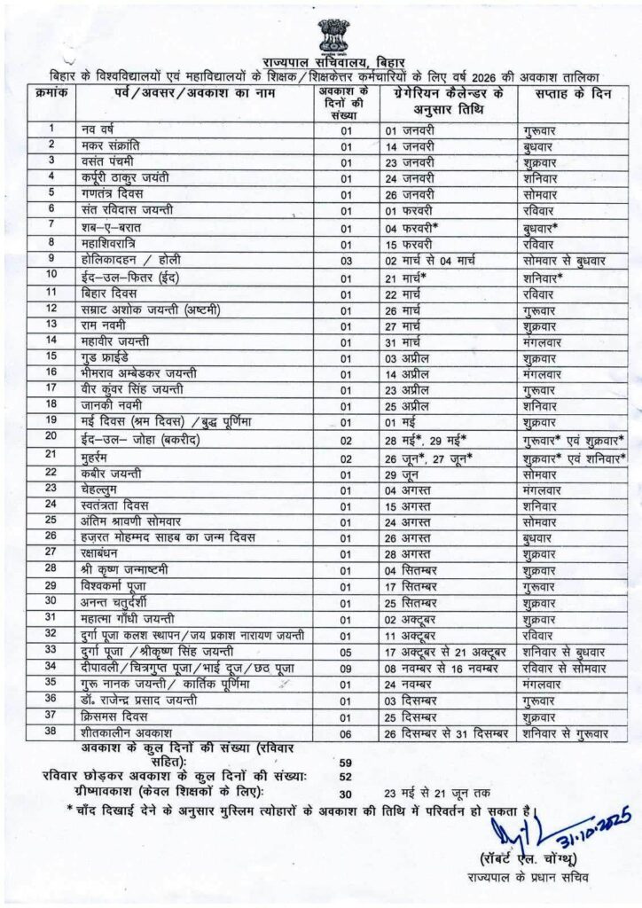 Holiday List 2026